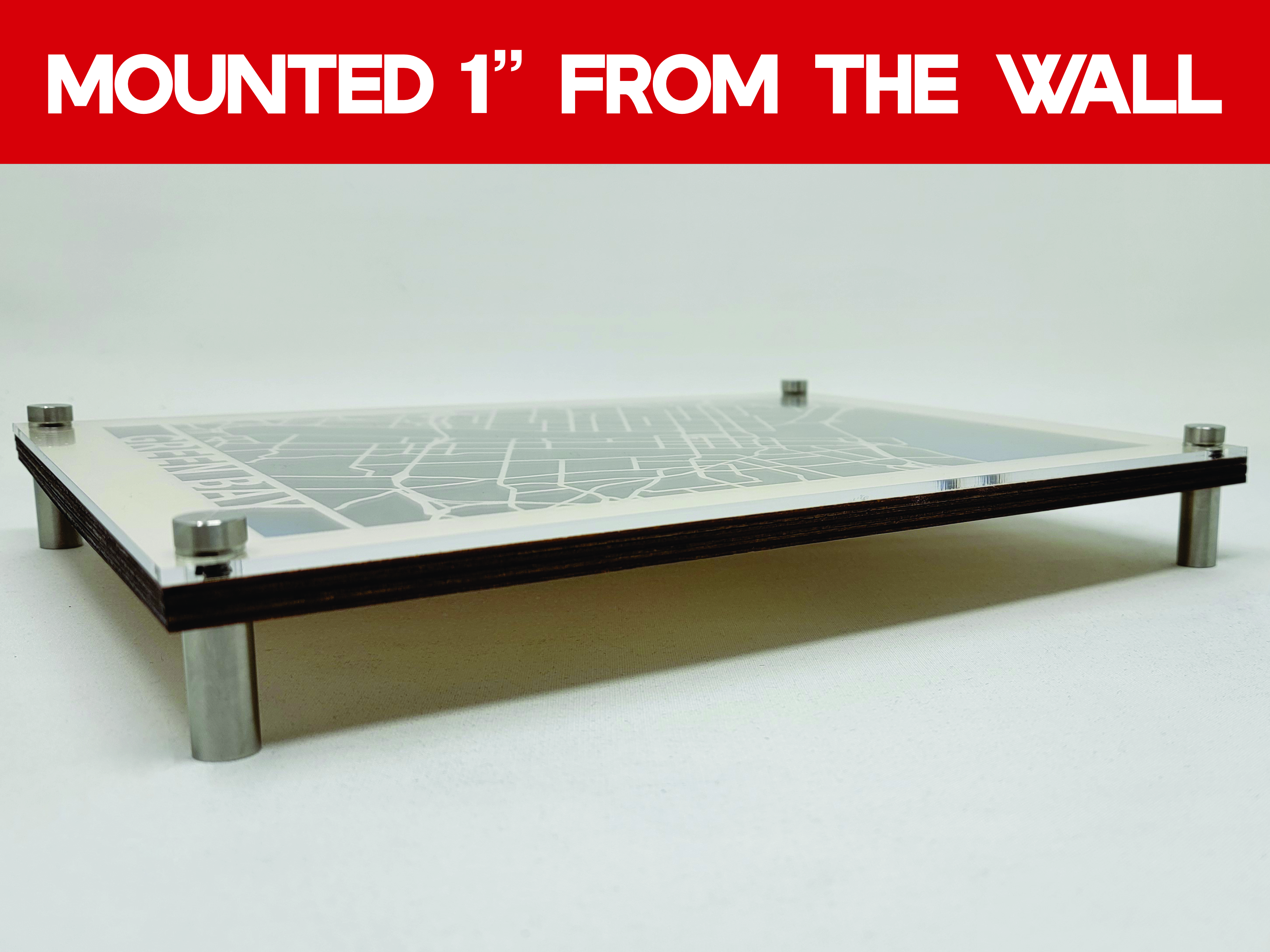 Choose from our diverse range of frame colors to complement your interior aesthetic. Whether you prefer a classic walnut finish, a classic black, or the natural look, our frames are designed to enhance the visual appeal of your custom wood city map. (No frame if Standoff Option is Chosen)